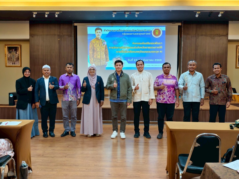 วันที่ 23 กันยายน พ.ศ. 2568 เวลา 13:30 น. นายภิญญา รัตนวรชาติ (ผอ.สช.จ.นราธิวาส) ประธานในพิธีเปิดกิจกรรมส่งเสริมและพัฒนาการจัดการศึกษาเอกชนในจังหวัดชายแดนภาคใต้ ภายใต้บริบทสังคมพหุวัฒนธรรมและยุค AI ภายใต้ โครงการส่งเสริมและพัฒนาการศึกษาเอกชนภายใต้ความหลากหลายทางวัฒนธรรมจังหวัดชายแดนภาคใต้อย่างยั่งยืน ณ ห้องประชุมผกากรอง วิทยาลัยชุมชนนราธิวาส อำเภอเมืองนราธิวาส จังหวัดนราธิวาส ระหว่างวันที่ 23-24 กันยายน 2568 วัตถุประสงค์เพื่อพัฒนาศักยภาพผู้บริหารและบุคลากร ให้มีความรู้ความเข้าใจและสามารถประยุกต์ใช้เทคโนโลยี AI ในการจัดการศึกษาได้อย่างมีประสิทธิภาพและยั่งยืน โดยมีกลุ่มเป้าหมายเป็น ผู้บริหาร พร้อมด้วย บุคลากรในสังกัดสำนักงานการศึกษาเอกชนอำเภอ ข้าราชการครู และพนักงานราชการครูในสังกัดสำนักงานการศึกษาเอกชนจังหวัดนราธิวาส จำนวนรวมกว่า 100 คน รูปภาพเพิ่มเติม