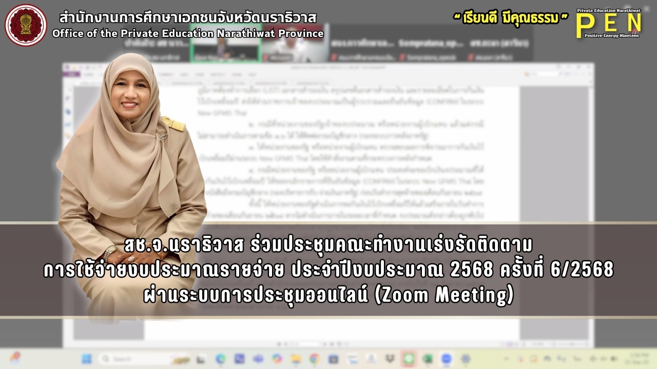 สช.จ.นราธิวาส ร่วมประชุมคณะทำงานเร่งรัดติดตาม การใช้จ่ายงบประมาณรายจ่าย ประจำปีงบประมาณ 2568 ครั้งที่ 6/2568 ผ่านระบบการประชุมออนไลน์ (Zoom Meeting)