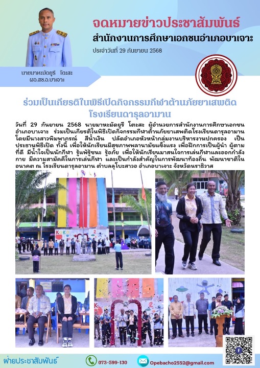 ร่วมเป็นเกียรติในพิธีเปิดกิจกรรมกีฬาต้านยาเสพติด โรงเรียนดารุลอามาน