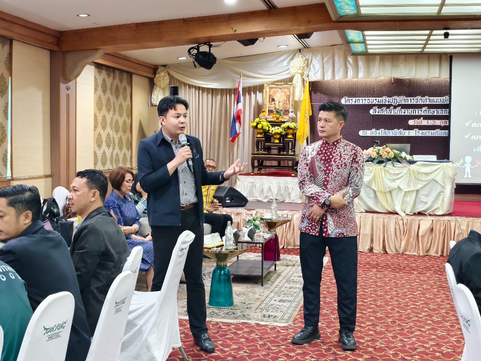 วันที่ 2 ตุลาคม พ.ศ. 2568 เวลา 09:00 น. นายภิญญา รัตนวรชาติ (ผอ.สช.จ.นราธิวาส) ลงพื้นที่ เยี่ยมเยียน ให้กำลังใจผู้เข้าร่วมโครงการอบรมเชิงปฏิบัติการจัดทำแผนพัฒนาการจัดการศึกษาของสถานศึกษาในสังกัดสำนักงานการศึกษาเอกชนจังหวัดนราธิวาส (รุ่นที่ 2) ณ ห้องประชุมโสภาพิสัย โรงแรมตันหยง อ.เมืองนราธิวาส จ.นราธิวาส โดยมีวัตถุประสงค์เพื่อร่วมเสริมสร้างความรู้และทักษะในการจัดทำแผนพัฒนาการจัดการศึกษาแก่ผู้บริหารและบุคลากรทางการศึกษา ร่วมส่งเสริมการวิเคราะห์ปัญหาและความต้องการของสถานศึกษา รวมถึงกฏหมายที่เกี่ยวข้องและจำเป็นในการปฏิบัติงาน จัดขึ้นระหว่างวันที่ 1-3 ตุลาคม พ.ศ. 2568 โดยมีกลุ่มเป้าหมายเป็นบุคลากรสำนักงานการศึกษาเอกชนจังหวัดและอำเภอ พร้อมด้วย ผู้บริหาร และครูของโรงเรียนเอกชนในสังกัดของ สช.อำเภอ (รือเสาะ ยี่งอ ศรีสาคร เมืองนราธิวาส เจาะไอร้อง ระแงะ บาเจาะ จะแนะ) จำนวนรวมกว่า 200 คน รูปภาพเพิ่มเติม