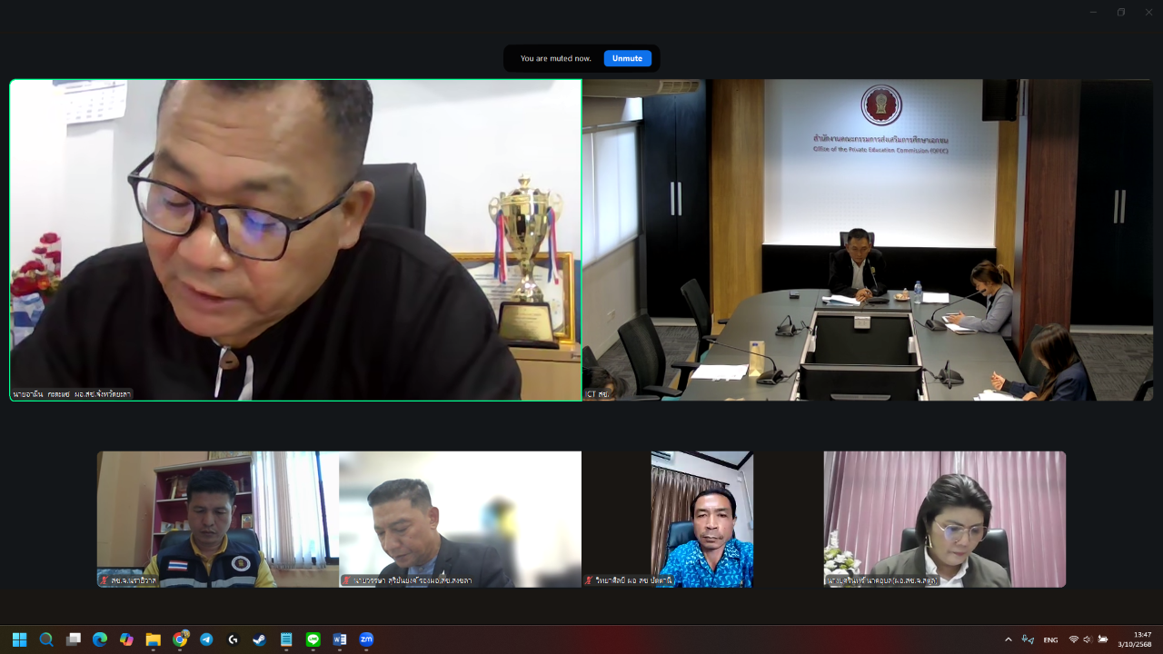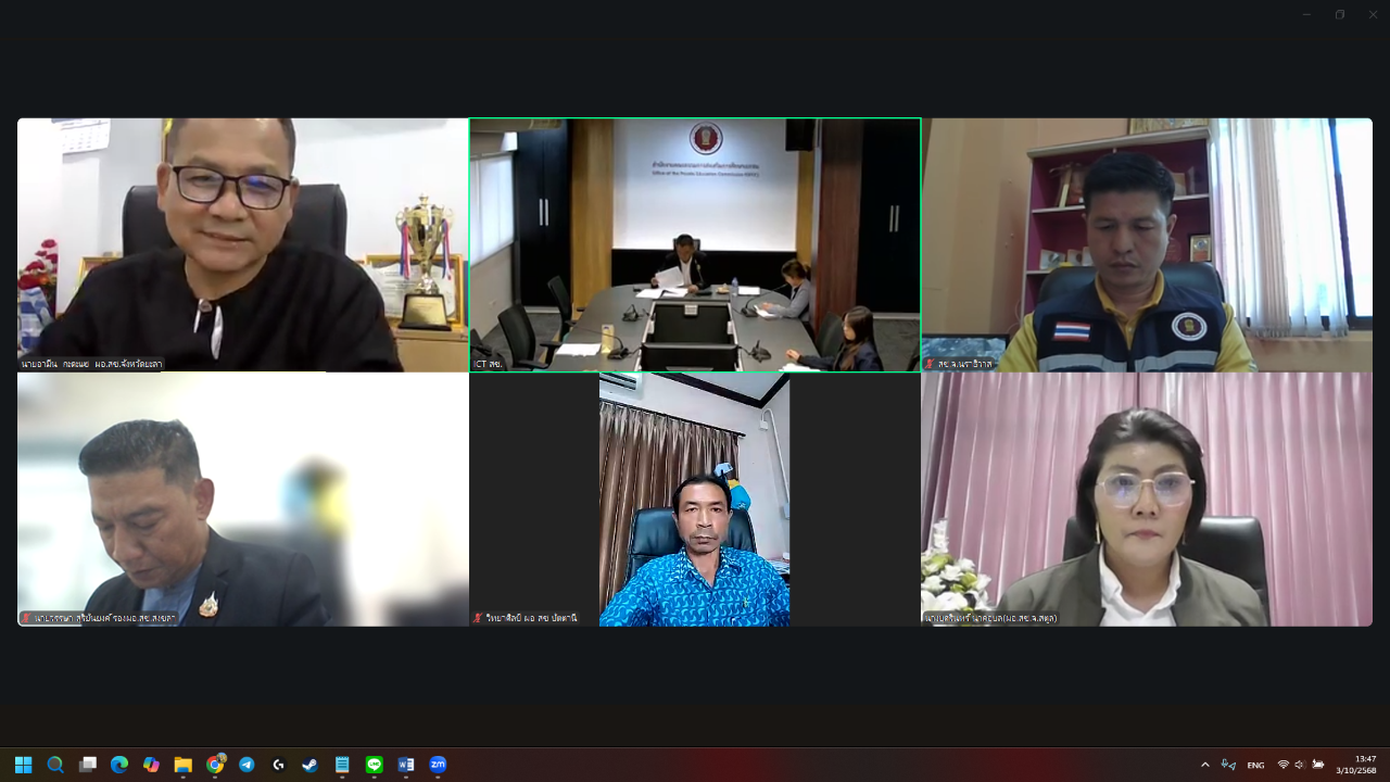 วันที่ 3 ตุลาคม พ.ศ. 2568 เวลา 13:30 น. ดร.คมกฤช จันทร์ขจร (รองเลขาธิการ กช.) ประธานการประชุมคณะกรรมการกลั่นกรองผลการประเมินผลการปฏิบัติราชการของข้าราชการครูเเละบุคลากรทางการศึกษา ตำเเหน่งรองผู้อำนวยการสำนักงานการศึกษาเอกชนจังหวัด และผู้อำนวยการสำนักงานการศึกษาเอกชนอำเภอ ศึกษานิเทศก์ และตำแหน่งบุคลากรทางการศึกษาอื่นตามมาตรา 38 ค. (2) (ครั้งที่ 2) ผ่านระบบการประชุมออนไลน์ (Zoom Meeting) โดย นายภิญญา รัตนวรชาติ (ผอ.สช.จ.นราธิวาส) ได้เข้าร่วมในการประชุมฯ พร้อมกับ ผู้อำนวยการกลุ่มงาน และผู้อำนวยการสำนักงานการศึกษาจังหวัดชายแดนภาคใต้ และ เจ้าหน้าที่ผู้มีส่วนเกี่ยวข้อง จำนวนรวมกว่า 10 คน