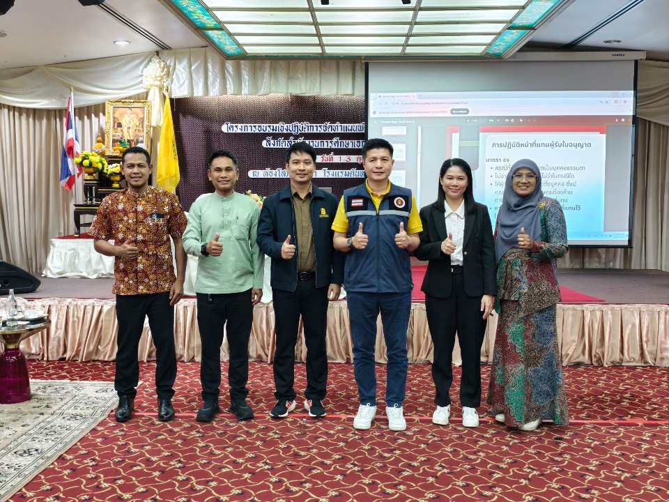 วันที่ 3 ตุลาคม พ.ศ. 2568 เวลา 16:30 น. นายภิญญา รัตนวรชาติ (ผอ.สช.จ.นราธิวาส) ประธานในพิธีปิดโครงการอบรมเชิงปฏิบัติการจัดทำแผนพัฒนาการจัดการศึกษาของสถานศึกษา สังกัดสำนักงานการศึกษาเอกชนจังหวัดนราธิวาส (รุ่นที่ 2) ณ ห้องประชุมโสภาพิสัย โรงแรมตันหยง อำเภอเมืองนราธิวาส จังหวัดนราธิวาส โดยมีวัตถุประสงค์เพื่อร่วมเสริมสร้างความรู้และทักษะในการจัดทำแผนพัฒนาการจัดการศึกษาแก่ผู้บริหารและบุคลากรทางการศึกษา และส่งเสริมการวิเคราะห์ปัญหาและความต้องการของสถานศึกษา รวมถึงกฏหมายที่เกี่ยวข้องและจำเป็นในการปฏิบัติงาน จัดขึ้นระหว่างวันที่ 1-3 ตุลาคม พ.ศ. 2568 โดยมีกลุ่มเป้าหมายเป็นบุคลากรสำนักงานการศึกษาเอกชนจังหวัดและอำเภอ พร้อมด้วย ผู้บริหาร และครูของโรงเรียนเอกชนในสังกัดของ สช.อำเภอ (รือเสาะ ยี่งอ ศรีสาคร เมืองนราธิวาส เจาะไอร้อง ระแงะ บาเจาะ จะแนะ) จำนวนรวมกว่า 200 คน รูปภาพเพิ่มเติม