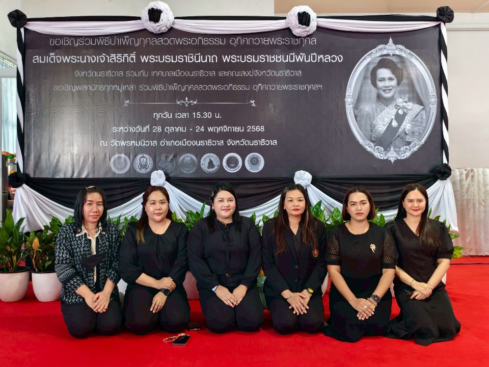 วันที่ 4 พฤศจิกายน พ.ศ. 2568 เวลา 16:00 น. นายภิญญา รัตนวรชาติ (ผอ.สช.จ.นราธิวาส) มอบหมายให้ นางสาวณัฐกานต์ มีแต้ม (นักวิชาการเงินและบัญชีปฏิบัติการ) พร้อมด้วย คณะบุคลากรสำนักงานการศึกษาเอกชนจังหวัดนราธิวาส ร่วมพิธีบำเพ็ญกุศลสวดพระอภิธรรม อุทิศถวายพระราชกุศลแด่สมเด็จพระนางเจ้าสิริกิติ์ พระบรมราชินีนาถ พระบรมราชชนนีพันปีหลวง ณ วัดพรหมพิวาส อ.เมืองนราธิวาส จ.นราธิวาส โดยมีผู้บริหาร ข้าราชการ และบุคลากร ในสังกัดกระทรวงศึกษาธิการ และกระทรวงพลังงาน (เจ้าภาพร่วม) เข้าร่วมในพิธีฯ จำนวนรวมกว่า 200 คน โดยมี นายไชยา สิยาชีพ (พลังงานจังหวัดนราธิวาส) เป็นประธานในพิธีฯ
