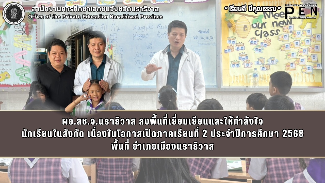 ผอ.สช.จ.นราธิวาส ลงพื้นที่เยี่ยมเยียนและให้กำลังใจ นักเรียนในสังกัด เนื่องในโอกาสเปิดภาคเรียนที่ 2 ประจำปีการศึกษา 2568