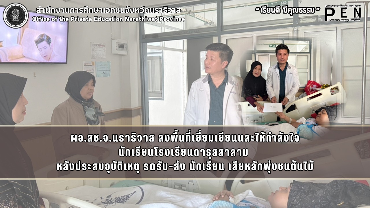 ผอ.สช.จ.นราธิวาส ลงพื้นที่เยี่ยมเยียนและให้กำลังใจ นักเรียนโรงเรียนดารุสสาลาม หลังประสบอุบัติเหตุ รถรับ-ส่ง นักเรียน เสียหลักพุ่งชนต้นไม้