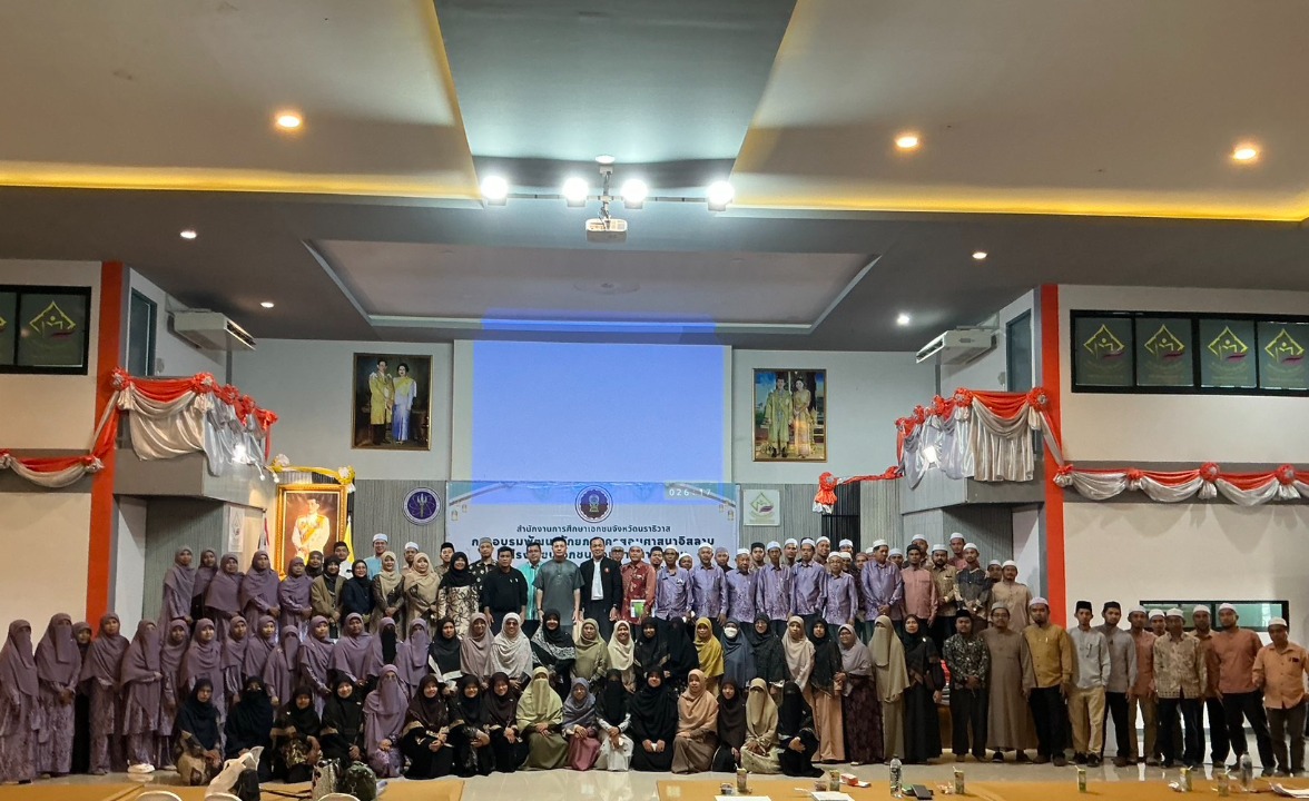 วันที่ 28 ธันวาคม พ.ศ. 2568 เวลา 08:00 น. นายกฤษณนันท์ กำไร (รองผู้ว่าราชการจังหวัดนราธิวาส) ประธานในพิธีเปิดกิจกรรมการอบรมพัฒนาศักยภาพครูสอนศาสนาอิสลามในโรงเรียนเอกชนสอนศาสนาอิสลาม ณ หอประชุมกระจูด วิทยาลัยชุมชนนราธิวาส อ.เมืองนราธิวาส จ.นราธิวาส โดยมี นายภิญญา รัตนวรชาติ (ผอ.สช.จ.นราธิวาส) เป็นผู้กล่าวรายงานวัตถุประสงค์ของการอบรม เพื่อยกระดับคุณภาพการจัดการเรียนการสอนศาสนาอิสลาม เสริมสร้างสมรรถนะครูให้สามารถพัฒนาผู้เรียนอย่างรอบด้าน ควบคู่คุณธรรม จริยธรรม และการอยู่ร่วมกันในสังคมพหุวัฒนธรรมอย่างสันติ ซึ่งมีครูสอนศาสนาอิสลามโรงเรียนเอกชนสอนศาสนาอิสลาม ในสังกัดสำนักงานการศึกษาเอกชนจังหวัดนราธิวาส และเจ้าหน้าที่ผู้เกี่ยวข้อง เข้าร่วมในการอบรมในครั้งนี้ รวมกว่า 550 คน