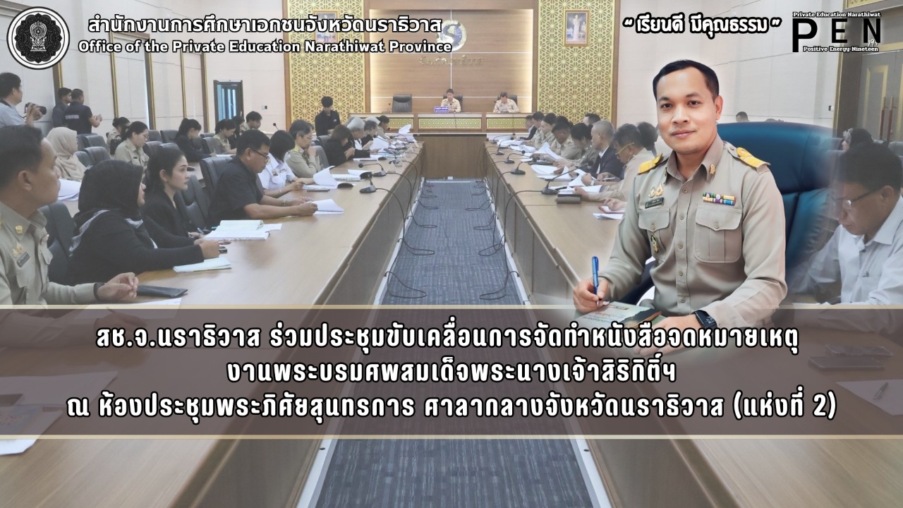 วันที่ 29 ธันวาคม พ.ศ. 2568 เวลา 14:00 น. นายภิญญา รัตนวรชาติ (ผอ.สช.จ.นราธิวาส) มอบหมายให้ นายรุสมาน นิเฮง (รอง ผอ.สช.จ.นราธิวาส) ร่วมประชุมคณะกรรมการจัดทำหนังสือจดหมายเหตุและหนังสื่อที่ระลึก งานพระบรมศพสมเด็จพระนางเจ้าสิริกิติ์ พระบรมราชินีนาถ พระบรมราชชนนีพันปีหลวง จังหวัดนราธิวาส ณ ห้องประชุมพระภิศัยสุนทรการ ชั้น 4 ศาลากลางจังหวัดนราธิวาส (แห่งที่ 2) การประชุมดังกล่าวมีวัตถุประสงค์เพื่อพิจารณากำหนดแนวทาง รูปแบบ และเนื้อหาในการจัดทำหนังสือจดหมายเหตุและหนังสือที่ระลึก ให้มีความถูกต้องครบถ้วน สมบูรณ์และสมพระเกียรติ อันเป็นหลักฐานทางประวัติศาสตร์ของจังหวัดนราธิวาสและของชาติต่อไป