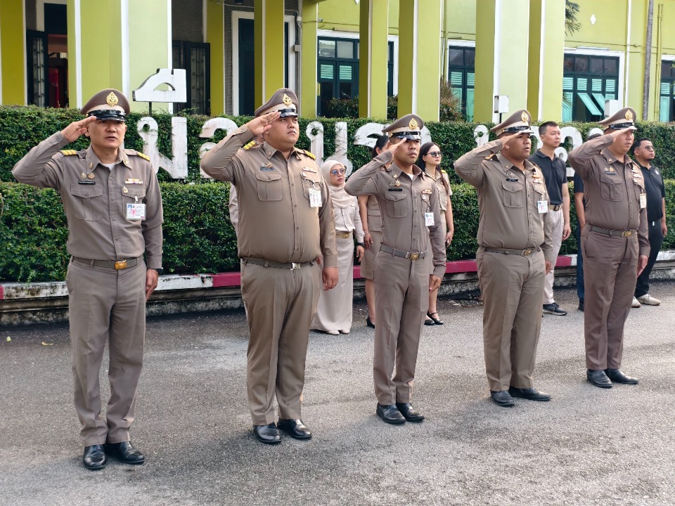 สช.จ.นราธิวาส ร่วมกิจกรรมเคารพธงชาติ เสริมสร้างจิตสำนึกความเป็นบุคลากรของรัฐที่ดี ณ บริเวณหน้าอาคารสำนักงานวัฒนธรรมจังหวัดนราธิวาส