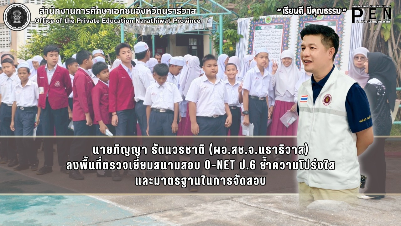 นายภิญญา รัตนวรชาติ (ผอ.สช.จ.นราธิวาส) ลงพื้นที่ตรวจเยี่ยมสนามสอบ O-NET ป.6 ย้ำความโปร่งใส และมาตรฐานในการจัดสอบ