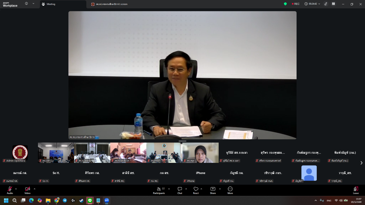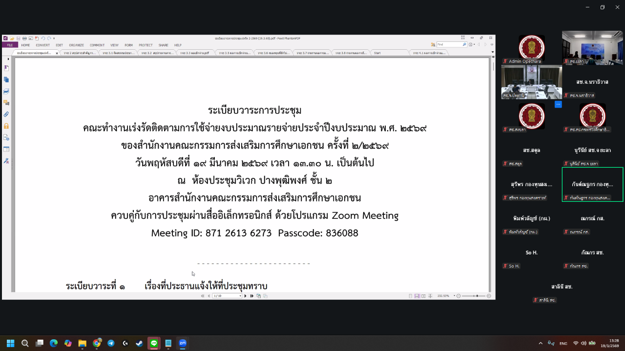 วันที่ 19 มีนาคม พ.ศ. 2569 เวลา 13:30 น. นายมณฑล ภาคสุวรรณ์ (เลขาธิการ กช.) ประธานการประชุมเร่งรัดติดตามการใช้จ่ายงบประมาณรายจ่ายประจำปีงบประมาณ พ.ศ. 2569 สำนักงานคณะกรรมการส่งเสริมการศึกษาเอกชน ครั้งที่ 2/2569 ผ่านระบบการประชุมออนไลน์ (Zoom Meeting) โดย นายรุสมาน นิเฮง (รอง ผอ.สช.จ.นราธิวาส) รักษาการในตำแหน่ง (ผอ.สช.จ.นราธิวาส) มอบหมายให้ นางสาวชนัญชิดา คุณสุทธิ์ (รอง ผอ.สช.จ.นราธิวาส) พร้อมด้วย นางสาวธนภรณ์ ยอดดี (นักวิชาการเงินและบัญชีชำนาญการ) และ นางสาวปาตีเม๊าะ มูนิ (นักวิเคราะห์นโยบายและแผนชำนาญการ) เพื่อร่วมติดตามผลการเบิกจ่าย งบประมาณของหน่วยงานในสังกัด ร่วมเร่งรัดการใช้จ่ายงบประมาณให้เกิดประสิทธิภาพ โปร่งใสและคุ้มค่า ตลอดจนรับทราบแนวทาง ข้อเสนอแนะในการแก้ไขปัญหาอุปสรรค เพื่อให้การดำเนินงานบรรลุเป้าหมายตามนโยบายของส่วนกลาง