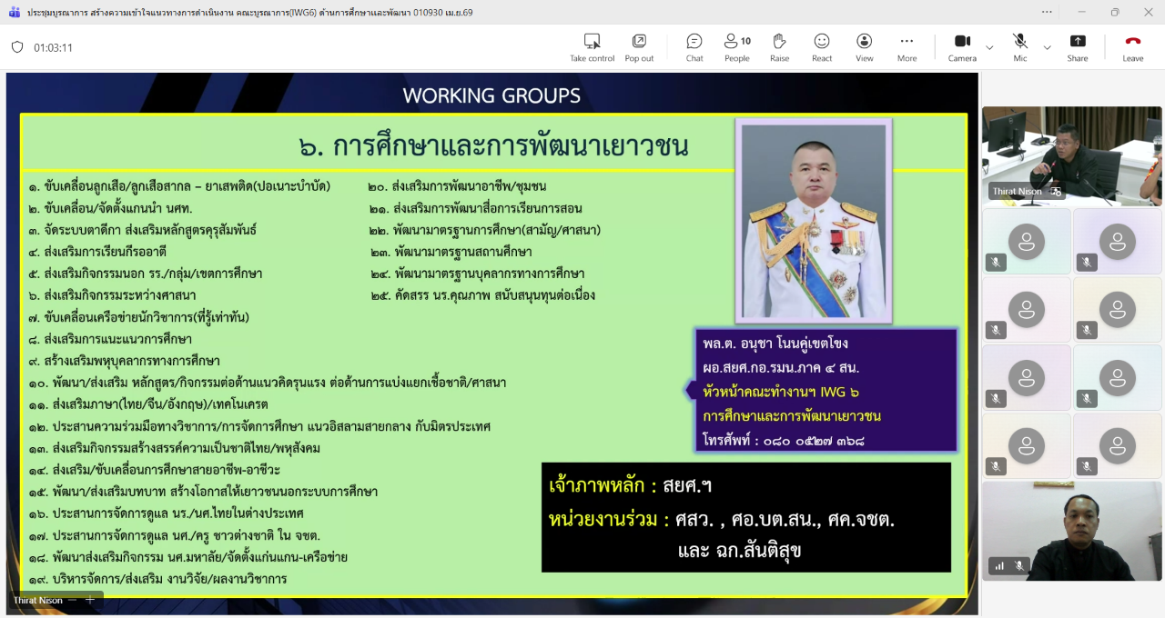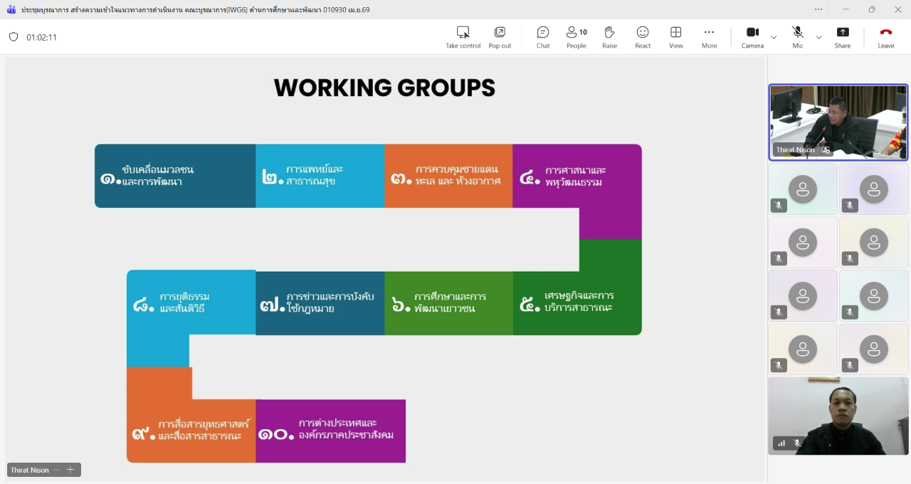สช.จ.นราธิวาส ร่วมประชุมผนึกกำลังแก้ปัญหาชายแดนใต้! IWG 2569 เดินหน้าบูรณาการทุกภาคส่วน สู่ความมั่นคงอย่างยั่งยืน ผ่านระบบการประชุมออนไลน์ (Microsoft Team Meeting)