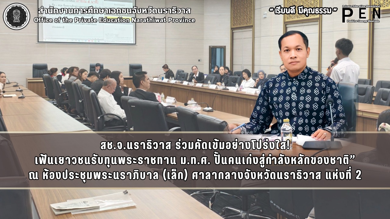 วันที่ 2 เมษายน พ.ศ. 2569 เวลา 09:00 น. นายกฤษณนันท์ กำไร (รองผู้ว่าราชการจังหวัดนราธิวาส) ประธานการประชุมคณะกรรมการคัดเลือก คัดสรร ผู้รับพระราชทานทุนและประสานงานระดับจังหวัดและสัมภาษณ์นักเรียนที่เข้ารับการคัดเลือก ภายใต้ มูลนิธิทุนการศึกษาพระราชทานสมเด็จพระบรมโอรสาธิราชเจ้าฯ สยามมกุฏราชกุมาร (ม.ท.ศ.) ณ ห้องประชุมพระนราภิบาล (เล็ก) ศาลากลางจังหวัดนราธิวาส แห่งที่ 2 โดย นายรุสมาน นิเฮง (รอง ผอ.สช.จ.นราธิวาส) รักษาการในตำแหน่ง (ผอ.สช.จ.นราธิวาส) ร่วมการประชุมฯ ทั้งนี้เพื่อร่วมพิจารณาคัดเลือกและคัดสรรนักเรียนผู้มีคุณสมบัติเหมาะสม ได้รับพระราชทานทุนการศึกษาอย่างรอบคอบ โปร่งใส เป็นธรรม พร้อมทั้งสัมภาษณ์เพื่อประเมินศักยภาพ ความประพฤติ และความมุ่งมั่นในการศึกษา อันจะเป็นการส่งเสริมโอกาสทางการศึกษาแก่เยาวชนที่มีความสามารถให้ได้รับการสนับสนุน และสามารถพัฒนาตนเองสู่การเป็นกำลังสำคัญในการพัฒนาประเทศชาติต่อไป