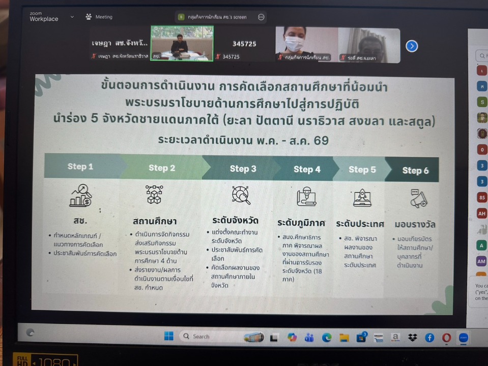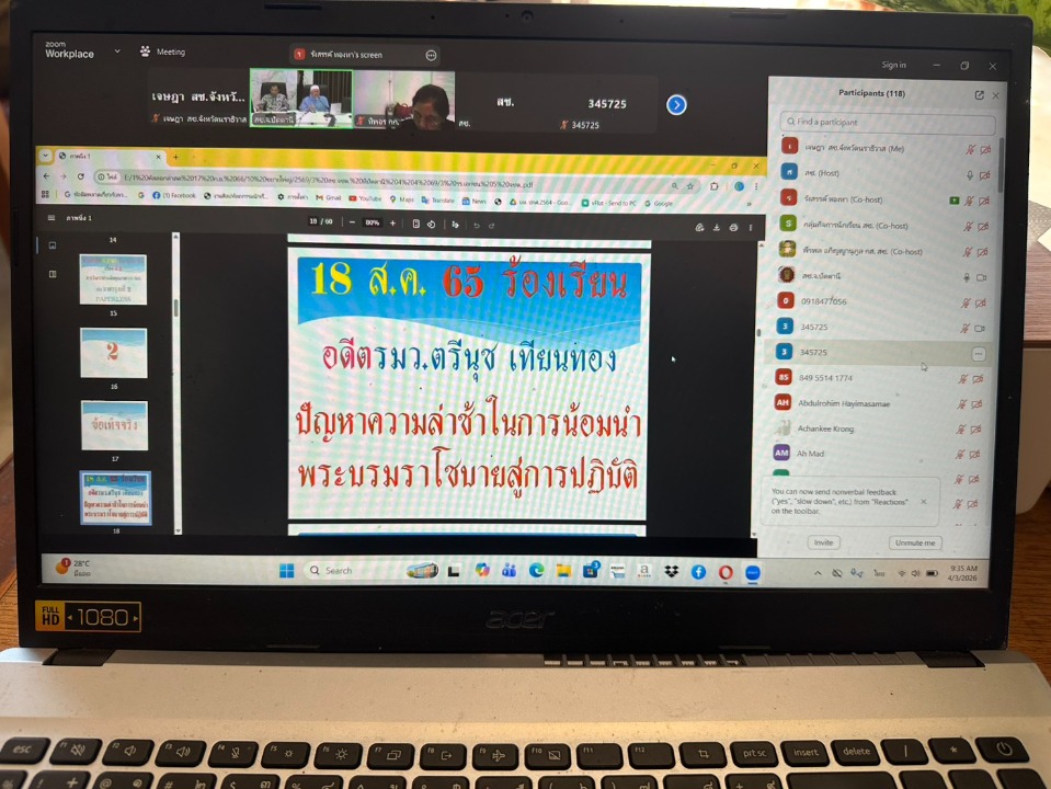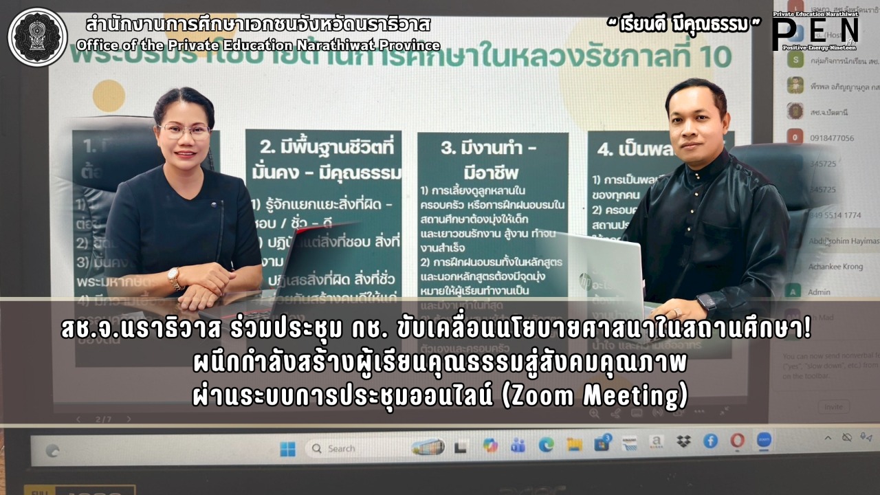 วันที่ 3 เมษายน พ.ศ. 2569 เวลา 09:00 น. นายภิญญา รัตนวรชาติ (รองเลขาธิการ กช.) ประธานเปิดการประชุมชี้แจงเพื่อสร้างการรับรู้และขับเคลื่อนการยึดมั่นในศาสนาตามพระบรมราโชบายด้านการศึกษาในสถานศึกษา ผ่านระบบการประชุมออนไลน์ (Zoom Meeting) โดย นายรุสมาน นิเฮง (รอง ผอ.สช.จ.นราธิวาส) รักษาการในตำแหน่ง (ผอ.สช.จ.นราธิวาส) พร้อมด้วย นางสาวชนัญชิดา คุณสุทธิ์ (รอง ผอ.สช.จ.นราธิวาส) คณะผู้บริหารในสังกัด สมาคมโรงเรียนเอกชนสอนศาสนาอิสลามจังหวัดนราธิวาส ตลอดจนผู้บริหารโรงเรียนเอกชนสอนศาสนาอิสลามในโครงการตามพระราชดำริ เข้าร่วมในการประชุมฯ วัตถุประสงค์เพื่อสร้างความเข้าใจและเสริมสร้างการรับรู้เกี่ยวกับแนวทางการขับเคลื่อนการยึดมั่นในศาสนาตามพระบรมราโชบายด้านการศึกษา ให้เป็นไปในทิศทางเดียวกัน ส่งเสริมให้สถานศึกษาสามารถนำหลักการดังกล่าวไปประยุกต์ใช้ในการจัดการเรียนการสอนและการพัฒนาผู้เรียน