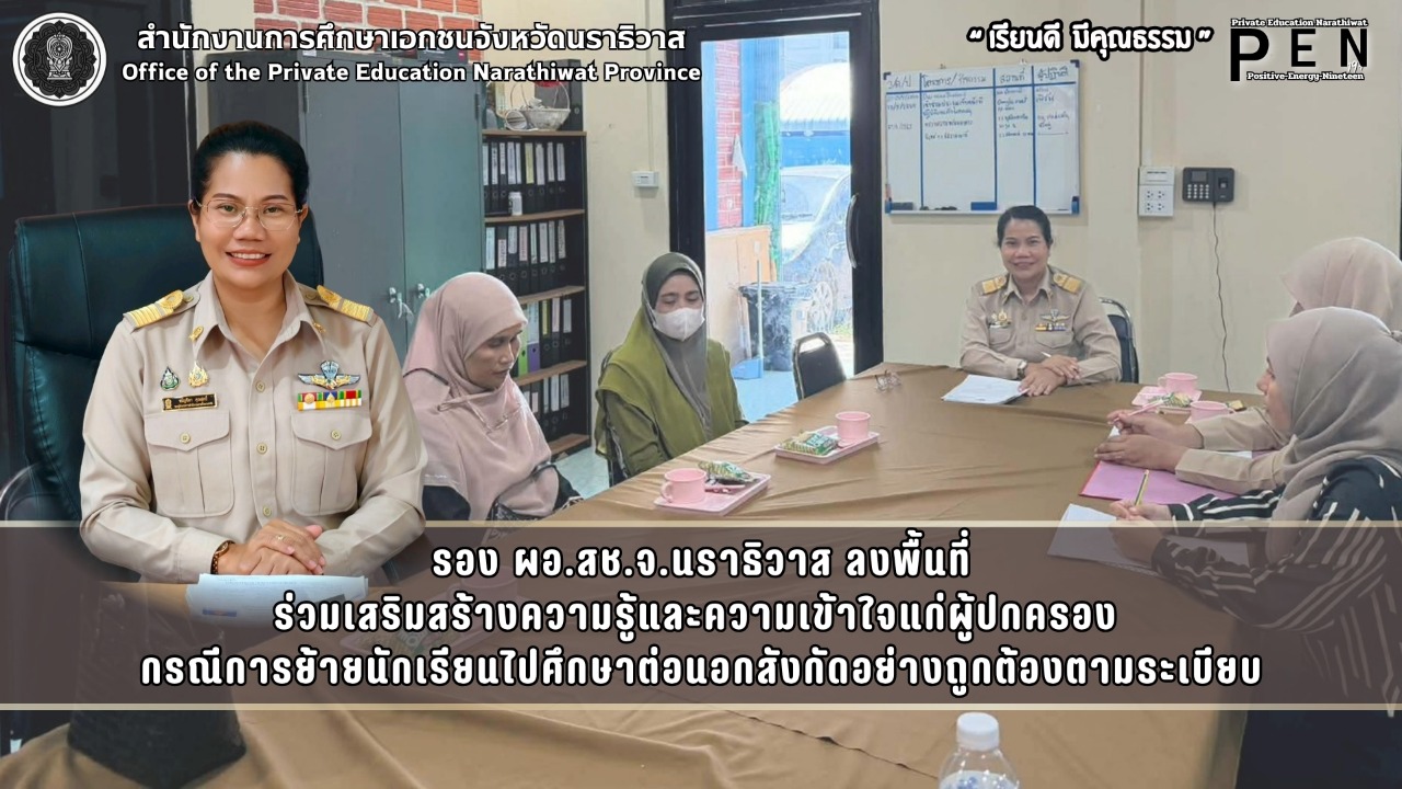 รอง ผอ.สช.จ.นราธิวาส ลงพื้นที่ ร่วมเสริมสร้างความรู้และความเข้าใจแก่ผู้ปกครอง กรณีการย้ายนักเรียนไปศึกษาต่อนอกสังกัดอย่างถูกต้องตามระเบียบ