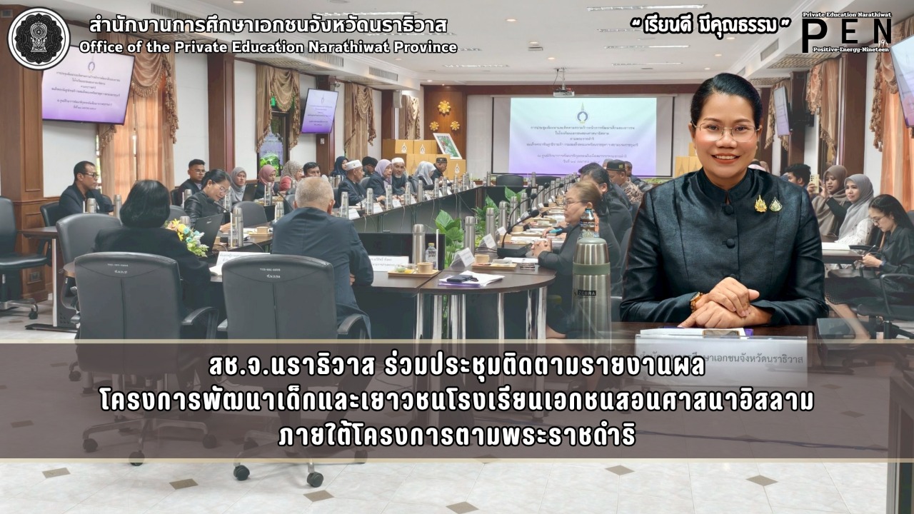 วันที่ 28 เมษายน พ.ศ. 2569 เวลา 09:00 น. นายรุสมาน นิเฮง (รอง ผอ.สช.จ.นราธิวาส) รักษาการในตำแหน่ง (ผอ.สช.จ.นราธิวาส) ได้มอบหมายให้ นางสาวชนัญชิดา คุณสุทธิ์ (รอง ผอ.สช.จ.นราธิวาส) และ นายเจษฎา ยาลา (นักวิชาการศึกษาชำนาญการ) ร่วมประชุมสัมมนาและติดตามความก้าวหน้าโครงการพัฒนาเด็กและเยาวชนของโรงเรียนเอกชนสอนศาสนาอิสลาม ภายใต้โครงการตามพระราชดำริ สมเด็จพระกนิษฐาธิราชเจ้า กรมสมเด็จพระเทพรัตนราชสุดาฯ สยามบรมราชกุมารี ณ ห้องประชุม ศูนย์ศึกษาการพัฒนาพิกุลทอง อันเนื่องมาจากพระราชดำริ โดยทั้งนี้ เพื่อติดตามและรายงานความก้าวหน้าในการดำเนินงานด้านต่างๆ ของโรงเรียนเอกชนในโครงการฯ พร้อมทั้งรับฟังปัญหา อุปสรรค และข้อเสนอแนะจากสถานศึกษา เพื่อนำไปสู่การปรับปรุงและพัฒนาการจัดการเรียนการสอนให้สอดคล้องกับบริบทของพื้นที่ได้อย่างเหมาะสมและยั่งยืน ทั้งนี้ได้รับเกียรติจาก พันเอกหญิง รศ.ดร.นันทพร วีรวัฒน์ (ที่ปรึกษาโครงการส่วนพระองค์ 905) เป็นประธานในการประชุมครั้งดังกล่าว