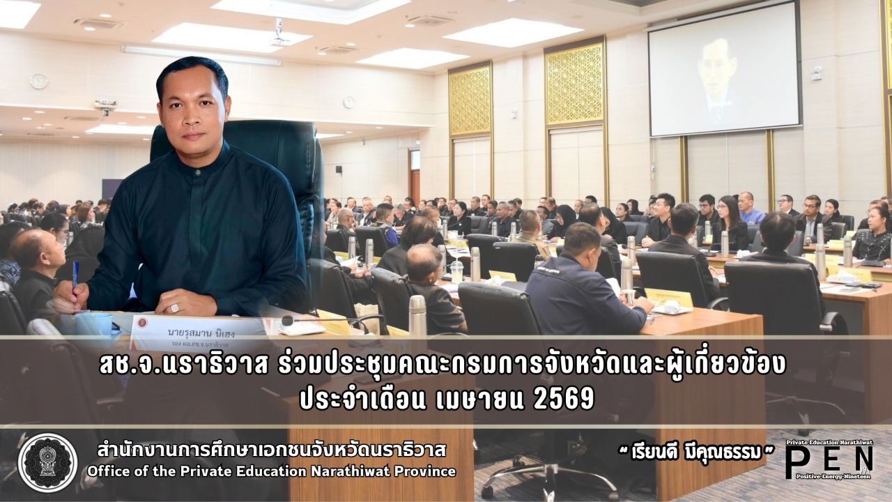 วันที่ 28 เมษายน พ.ศ. 2569 เวลา 09:30 น. นายบุญช่วย หอมยามเย็น (ผู้ว่าราชการจังหวัดนราธิวาส) ประธานการประชุมคณะกรมการจังหวัด หัวหน้าส่วนราชการ หัวหน้าหน่วยงานรัฐวิสาหกิจ นายอำเภอและผู้เกี่ยวข้อง ประจำเดือน เมษายน 2569 ณ ห้องประชุมพระภิศัยสุนทรการ (ชั้น 4) ศาลากลางจังหวัดนราธิวาส แห่งที่ 2 อ.เมืองนราธิวาส จ.นราธิวาส โดย นายรุสมาน นิเฮง (รอง ผอ.สช.จ.นราธิวาส) รักษาการในตำแหน่ง (ผอ.สช.จ.นราธิวาส) ร่วมการประชุมฯ เพื่อร่วมรับทราบข้อราชการสำคัญตามระเบียบวาระการประชุม พร้อมกันนี้ ได้ร่วมประกาศเจตนารมณ์ขับเคลื่อนจังหวัดนราธิวาสเป็นจังหวัดคุณธรรม ประจำปีงบประมาณ พ.ศ. 2569 เพื่อร่วมส่งเสริมและปลูกฝังค่านิยมด้านคุณธรรม จริยธรรม และธรรมาภิบาลในการปฏิบัติราชการแก่หน่วยงานภาครัฐทุกภาคส่วนในจังหวัดนราธิวาส พร้อมทั้ง สร้างจิตสำนึกในการปฏิบัติหน้าที่ด้วยความซื่อสัตย์และยึดประโยชน์ส่วนรวมเป็นสำคัญ อันนำไปสู่การยกระดับคุณภาพการบริหารจัดการภาครัฐ และเสริมสร้างความเชื่อมั่นให้แก่ประชาชนอย่างยั่งยืนต่อไป