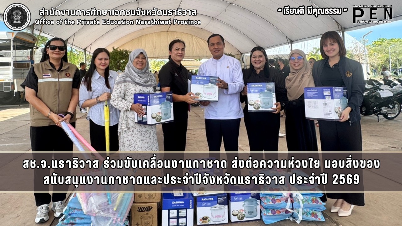 สช.จ.นราธิวาส ร่วมขับเคลื่อนงานกาชาด ส่งต่อความห่วงใย มอบสิ่งของสนับสนุนงานกาชาดและประจำปีจังหวัดนราธิวาส ประจำปี 2569