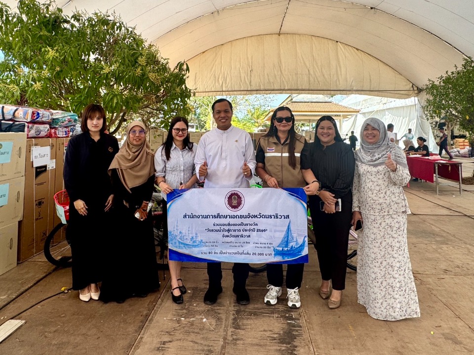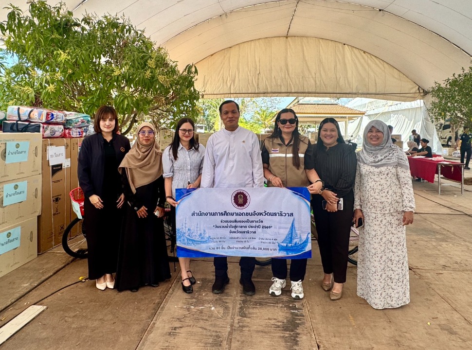 วันที่ 30 เมษายน พ.ศ. 2569 นายรุสมาน นิเฮง (รอง ผอ.สช.จ.นราธิวาส) รักษาการในตำแหน่ง (ผอ.สช.จ.นราธิวาส) พร้อมด้วย คณะบุคลากรในสังกัด ร่วมมอบสิ่งของเพื่อสมทบทุนเป็นรางวัลในงานกาชาดและงานประจำปีจังหวัดนราธิวาส ประจำปี 2569 ณ ร้านนาวากาชาด บริเวณสวนสาธารณะเฉลิมพระเกียรติ 6 รอบพระชนมพรรษา (อำเภอเมืองนราธิวาส) เพื่อร่วมสนับสนุนการดำเนินงานของเหล่ากาชาดจังหวัดนราธิวาสในการจัดหารายได้เพื่อนำไปช่วยเหลือผู้ประสบความเดือดร้อน ผู้ด้อยโอกาสและกิจกรรมสาธารณประโยชน์ต่างๆ อันเป็นการส่งเสริมคุณค่าของการแบ่งปันและการมีส่วนร่วมของสังคมอย่างยั่งยืน