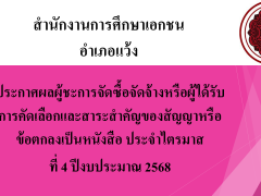 ประกาศสำนักงานการศึกษาเอกชนอำเภอแว้ง เรื่องประกาศผู้ชนะการจั... (ดู: 9 ครั้ง)