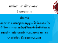 ประกาศสำนักงานการศึกษาเอกชนอำเภอสุคิริน เรื่องประกาศผู้ชนะกา... (ดู: 21 ครั้ง)