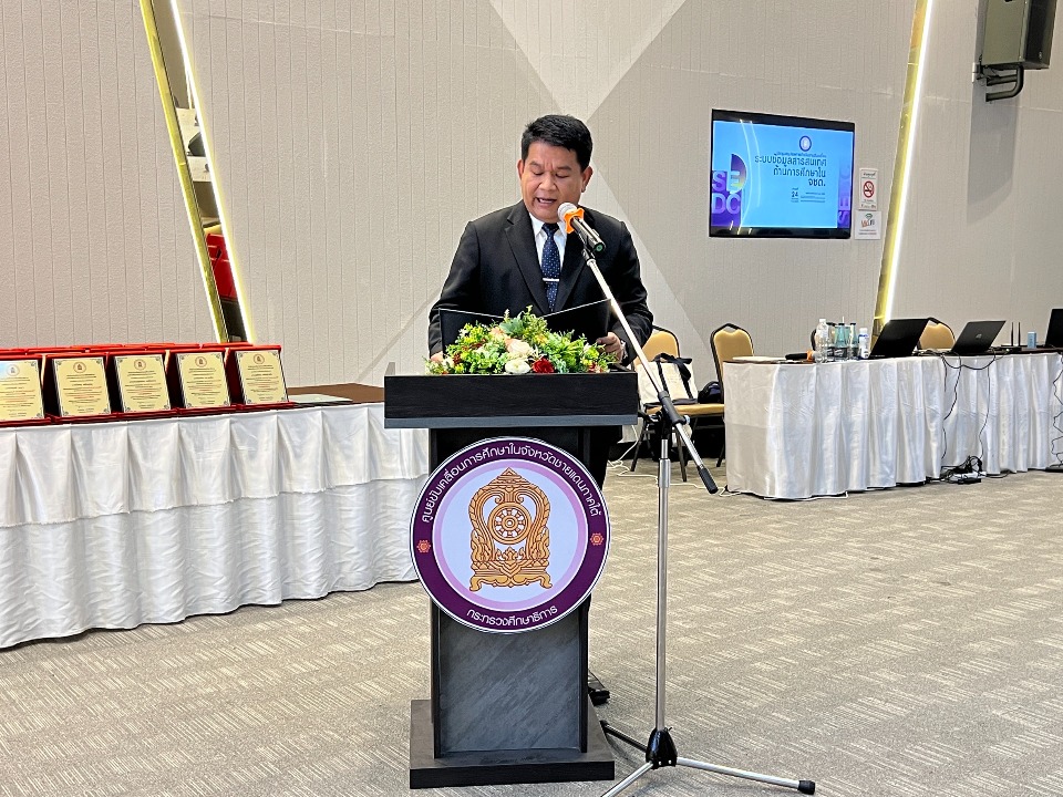 วันที่ 24 กันยายน พ.ศ. 2568 เวลา 09:00 น. นายสุรศักดิ์ อินศรีไกร หัวหน้าผู้ตรวจราชการกระทรวงศึกษาธิการ ประธานในพิธีเปิดการประชุมสรุปผลการดำเนินงานขับเคลื่อน และรายงานผลการตรวจราชการและติดตามประเมินผลการจัดการศึกษาของกระทรวงศึกษาธิการ ประจำปีงบประมาณ พ.ศ. 2568 เขตตรวจราชการที่ 7 ณ ห้องประชุมแกรนด์บอลรูม (ชั้น 3) โรงแรมเซาท์เทอร์นแอร์พอร์ต อำเภอหาดใหญ่ จังหวัดสงขลา โดย นายภิญญา รัตนวรชาติ (ผอ.สช.จ.นราธิวาส) มอบหมายให้ นางสาวสาลินี ทองแดง (พนักงานการเงินและบัญชี) ร่วมในการประชุม เพื่อร่วมรับฟังการนำเสนอระบบข้อมูลสารสนเทศด้านการศึกษาในจังหวัดชายแดนภาคใต้ (SEDC) และร่วมรับฟังการรายงานผลการตรวจราชการและติดตามประเมินผลการจัดการศึกษาของกระทรวงศึกษาธิการ ประจำปีงบประมาณ พ.ศ. 2568