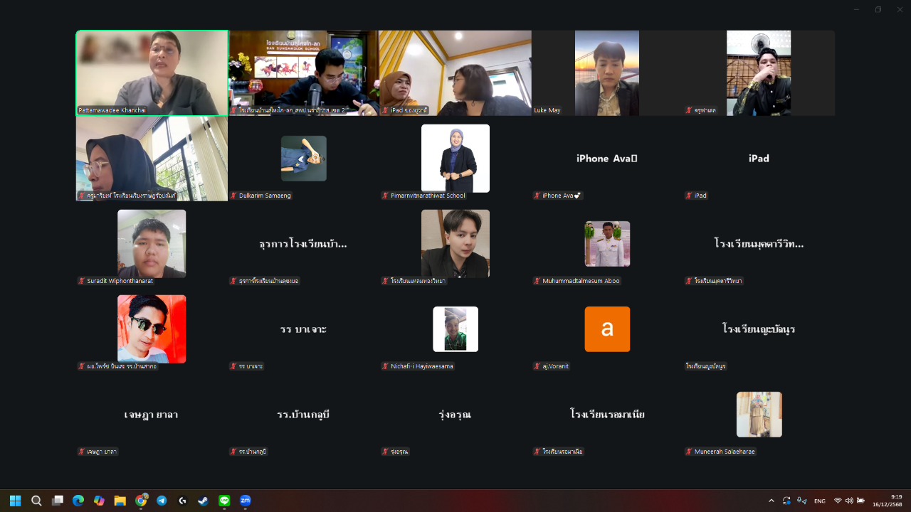 วันที่ 16 ธันวาคม พ.ศ. 2568 เวลา 09:00 น. นายภิญญา รัตนวรชาติ (ผอ.สช.จ.นราธิวาส) มอบหมายให้ นายเจษฎา ยาลา (นักวิชาการศึกษาชำนาญการ) ร่วมการประชุมชี้แจงแนวทางการคัดเลือกครูต้นแบบ “The Narathiwat Award for Role Model Teacher 2025 : รางวัลครูต้นแบบห้องเรียนผู้ประกอบการรุ่นใหม่บนฐานคุณธรรมนราธิวาส” ผ่านระบบการประชุมออนไลน์ Zoom Cloud Meeting เพื่อร่วมสร้างความเข้าใจด้านหลักเกณฑ์ วิธีการ ตลอดจนแนวทางในการดำเนินงานที่เกี่ยวข้องอื่นๆ เพื่อให้การดำเนินการคัดเลือกแผนการจัดการเรียนรู้ในระดับโรงเรียนเป็นไปในทิศทางเดียวกัน